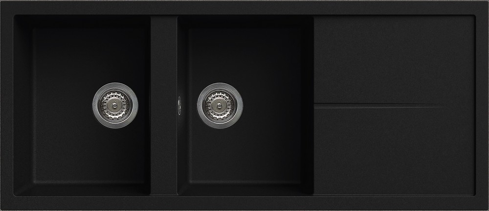 Integrovaná oblast pro příslušenství v odkapávači, vybavená předvrtanými otvory, které vám umožňují instalovat doplňky: excentrické ovládání odpadu, dřezovou baterii s vytahovací sprchou a dávkovač saponátu.