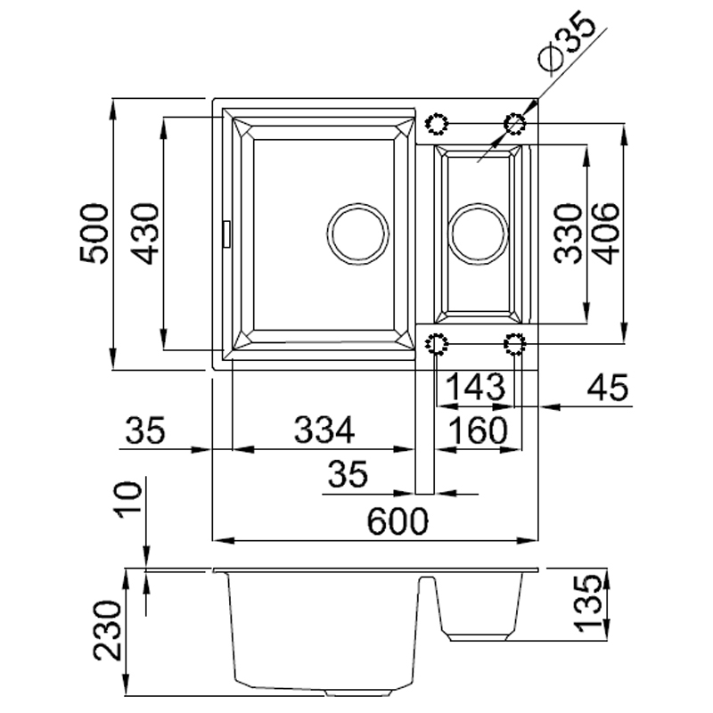 HLOUBKA VANIČKY:        210/150 MM