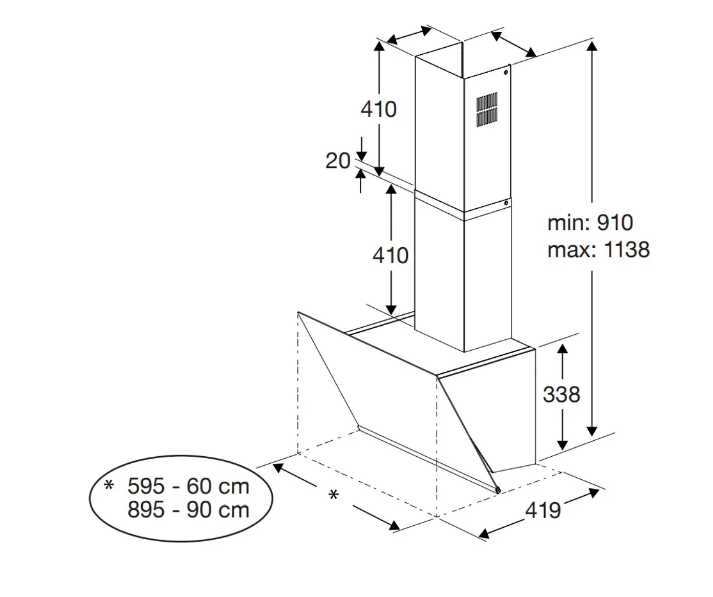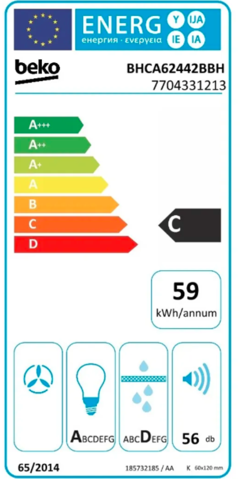 Kovové tukové filtry, možno mýt v myčce Spotřeba el. energie: 59 kWh/rok