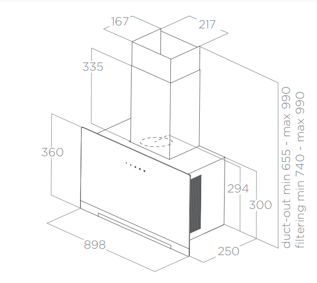 Přední skleněný panel se díky svému plochému tvaru velmi snadno čistí. Aplomb byl navíc navržen tak, aby byla jeho údržba snadná a bezpečná: jakmile je panel otevřený, je možný přímý přístup k vnitřní části digestoře bez jakékoli překážky a tukové filtry lze vyjmout pouhým vysunutím .