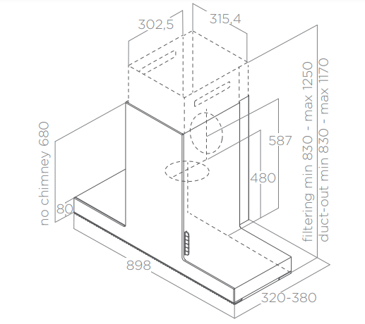 Odsavač par (digestoř) ELICA HAIKU je možné doplnit o montážní přípravek, který umožní plynule nastavit hloubku odsavače od 32 cm do 38 cm.