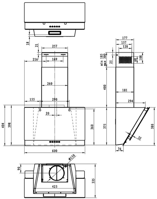 Maximální výkon při odtahu/rychlost II: 332 m³/h