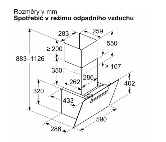 Max. výška spotřebiče při odvětrávání