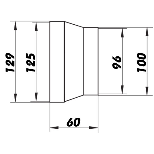 PVC redukce pro vzduchovody, kde potřebujete redukovat potrubí Ø 100 mm na vzduchotechnická potrubí Ø 125 mm.