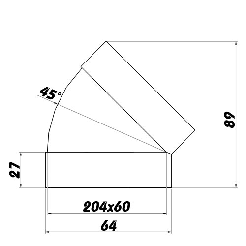 Plastové vertikální koleno 45° se využívá k napojení ventilačního potrubí 204x60 mm nebo komponentů.