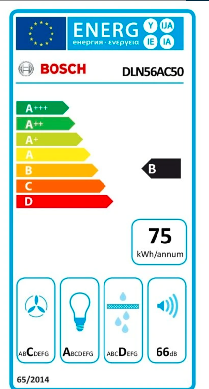podle norem EN 61591 a EN/IEC 60704-2-13 může odsavač par při odtahu dosáhnout následujících hodnot: stupeň 1: výkon odsávání 295 m3/h; hlučnost 50 dB (A) re1pW stupeň 2: výkon odsávání 445 m3/h; hlučnost 59 dB (A) re1pW stupeň 3: výkon odsávání 570 m3/h; hlučnost 66 dB (A) re1pW intenzivní: výkon odsávání 645 m3/h; hlučnost 68 dB (A) re1pW