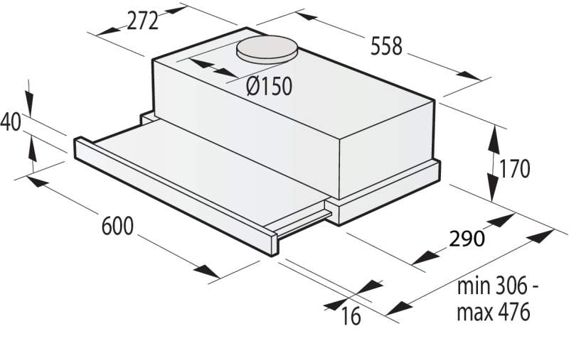 Typ instalace: Vestavný výsuvný odsavač