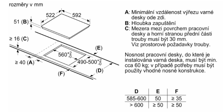 Požadovaná velikost otvoru pro instalaci (v x š x h)