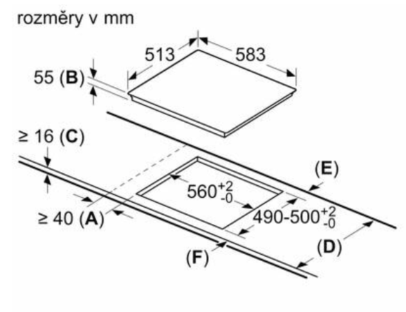 Požadovaná velikost otvoru pro instalaci (v x š x h): 55 x 560-560 x 490-500