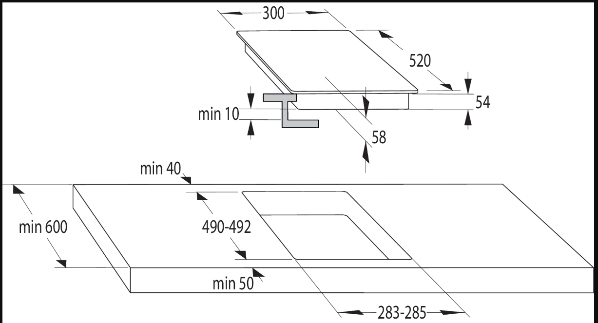 Rozměry varné desky GORENJE jsou 5,8 × 30 × 52 cm (vך×h)