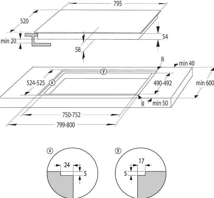 Hloubka pro vestavbu cm 52.4
