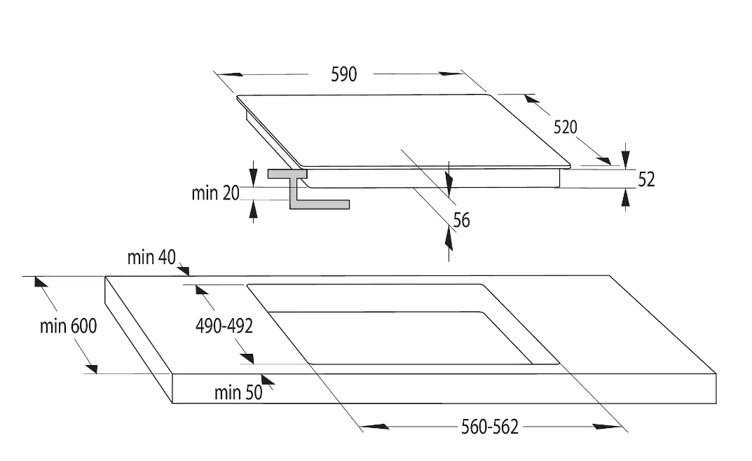 4 indukční varné zóny (2x 190x190 mm 1,8/2,1 kW, 1x 160 mm 1,6/1,8 kW, 1x 210 mm 2/2,6 kW)