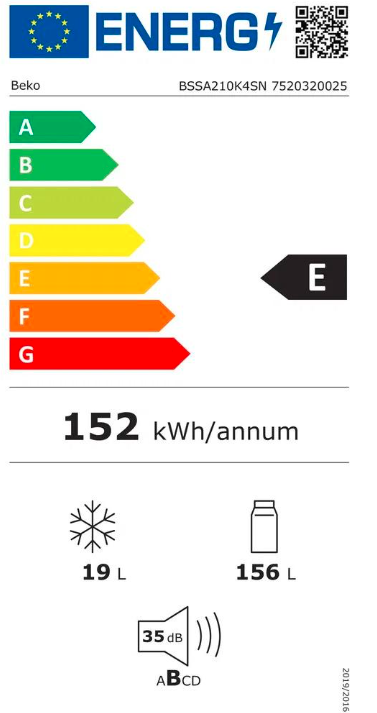 Hledáte kombinovanou lednici s mrazákem, která bude ideální pro menší rodinu a umožní maximální využití kuchyňského prostoru? Pak je tu pro vás vestavná lednice Beko BSSA210K4SN v klasickém bílém provedení, která nabízí objem 156 l v chladicím prostoru a mrazák, umístěný nahoře, s objemem 19 l. Je vybavena ProSmart invertorovým kompresorem, který se může pochlubit až 4× tišším provozem ve srovnání se standardními kompresory a také nižší spotřebou energie a dlouhou životností. Bude vám tak spolehlivě sloužit po mnoho let. Na kompresor dává výrobce záruku 10 let. Doma vás určitě nebude nijak rušit, její hlučnost odpovídá třídě B a dosahuje pouhých 35 dB.