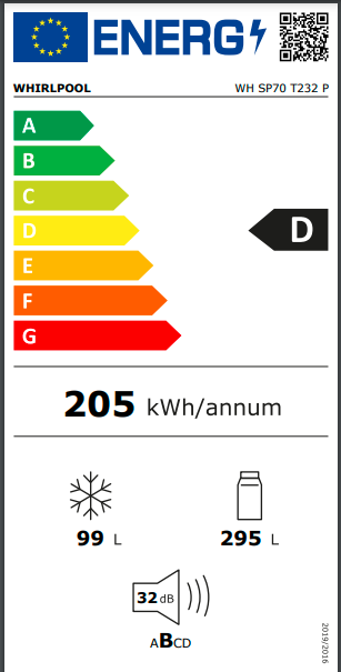 Roční spotřeba energie v kilowatthodinách za rok (kWh/rok) (EU) 2017/1369: 205