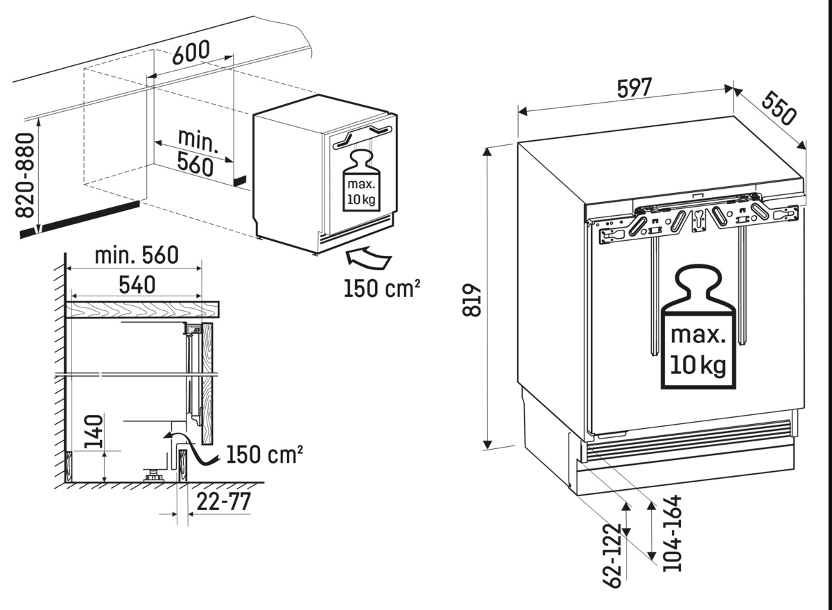 Mraznička vhodná k instalaci pod stůl s NoFrostem