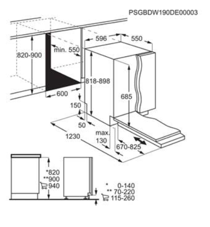 Vestavné rozměry V(min/max)xŠxH (mm): 820/900 x 600 x 570