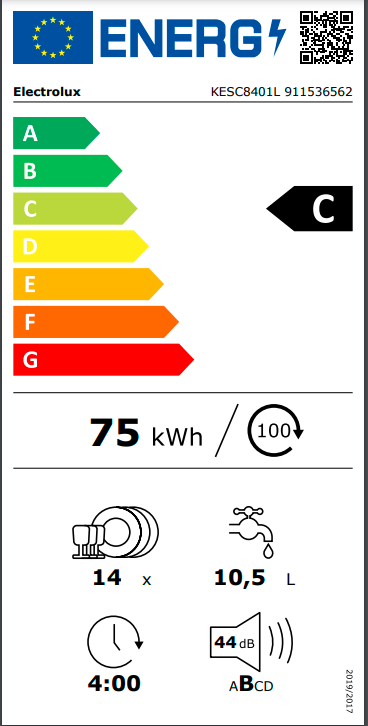 Kapacita mytí: 14: Podle normy IEC pro sadu nádobí. Jednou sadou nádobí je podle této normy: talíř, hluboký talíř, dezertní talíř, sklenice, čajový šálek s podšálkem, nůž, vidlička, polévková lžíce, dezertní lžíce a lžička.