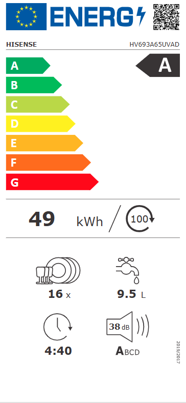 Vestavná myčka s ohledem na životní prostředí. Nabízí výjimečnou úsporu energie o 10 % lepší než standardní třída A. Jeden mycí cyklus spotřebuje jen 0,5 kWh, takže šetříte jak elektřinu, tak peníze. Užívejte si zářivě čisté nádobí s nižšími účty za energie.*Na základě interního testování jsou příslušné modely s vylepšenými parametry mytí až o 10 % účinnější, než se vyžaduje pro dosažení limitu energetické třídy A podle nařízení (EU) č. 2019/2014.