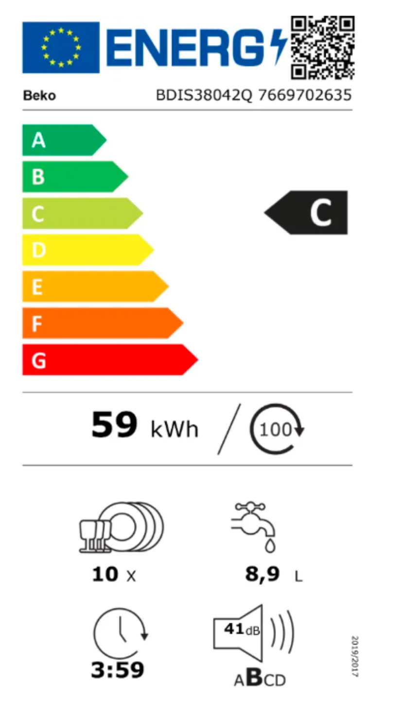 Vestavná myčka nádobí Beko BDIS38042Q Základní informace: - Druh spotřebiče: Myčka nádobí - Typ konstrukce: Vestavná (šířka 45 cm) - Energetická třída: C - Barva spotřebiče: N ...Více informací