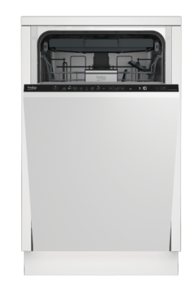 Vestavná myčka Beko DIS 48120 v šířce 45 cm, energetické třídě E pro 11 sad nádobí s AquaIntense ramenem, LED signalizací provozu na podlahu, příbojovou přihrádkou, ProSmart i ...Více informací