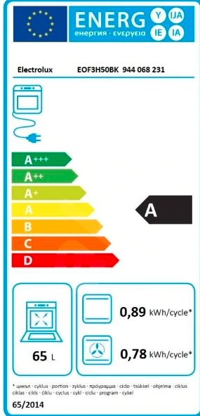 | Objem trouby L | 65 |