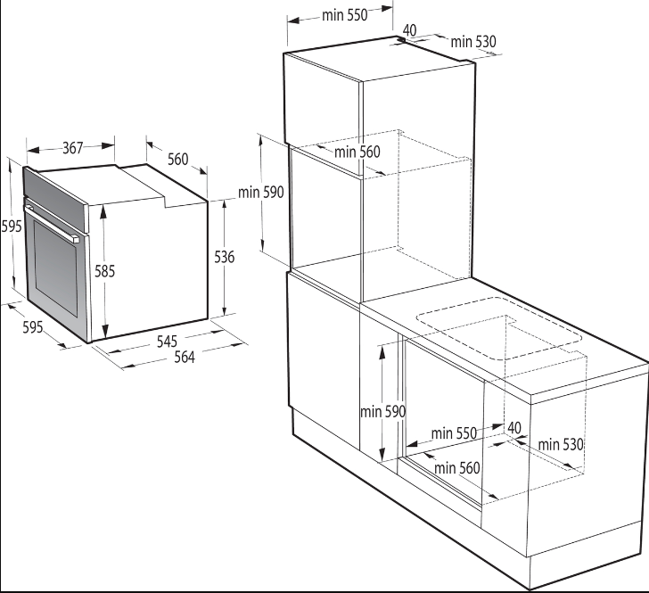 | Výška pro vestavbu cm | 59 |
